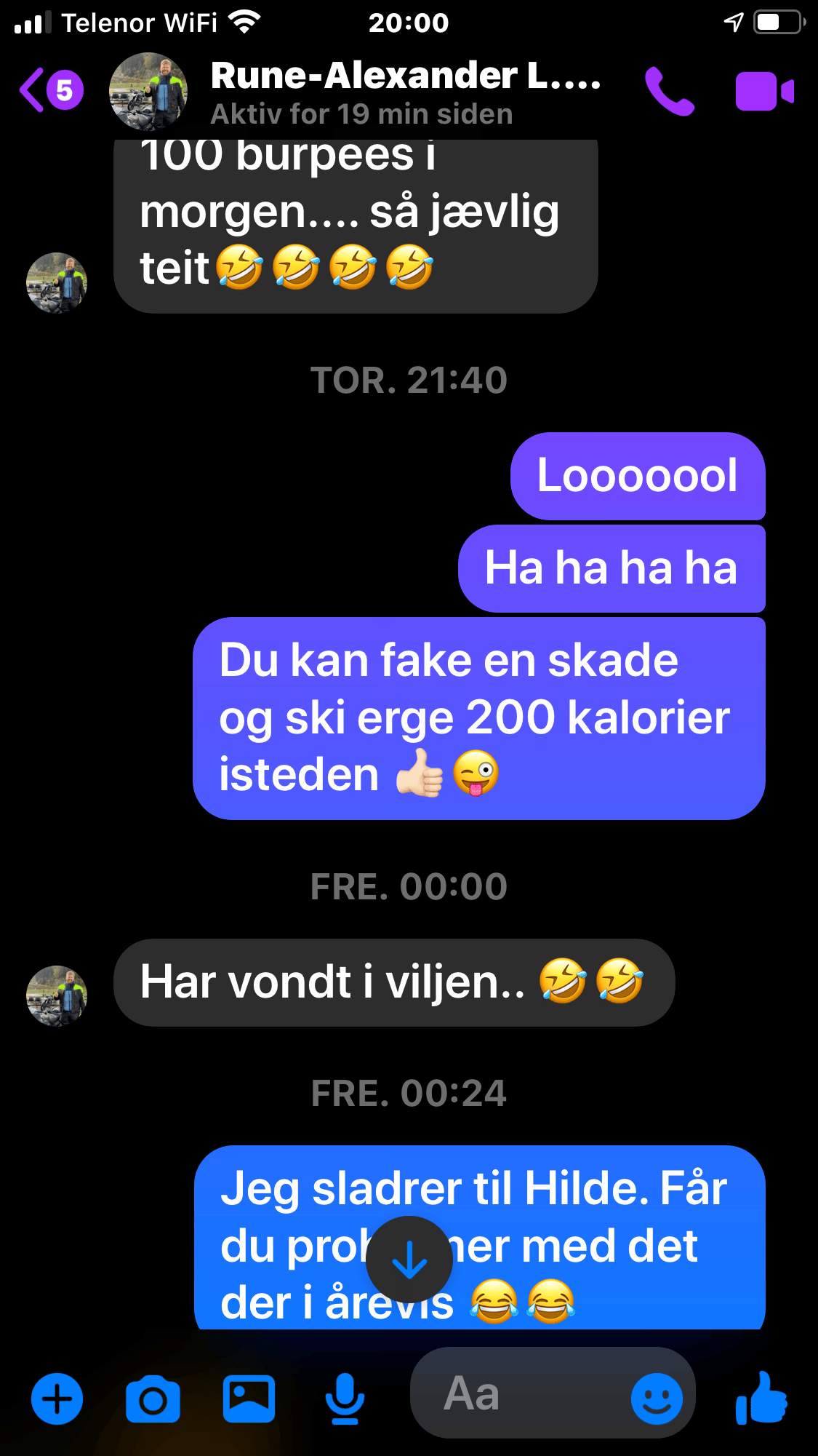 “Hei Rune. Nå slipper du Burpees i noen uker”